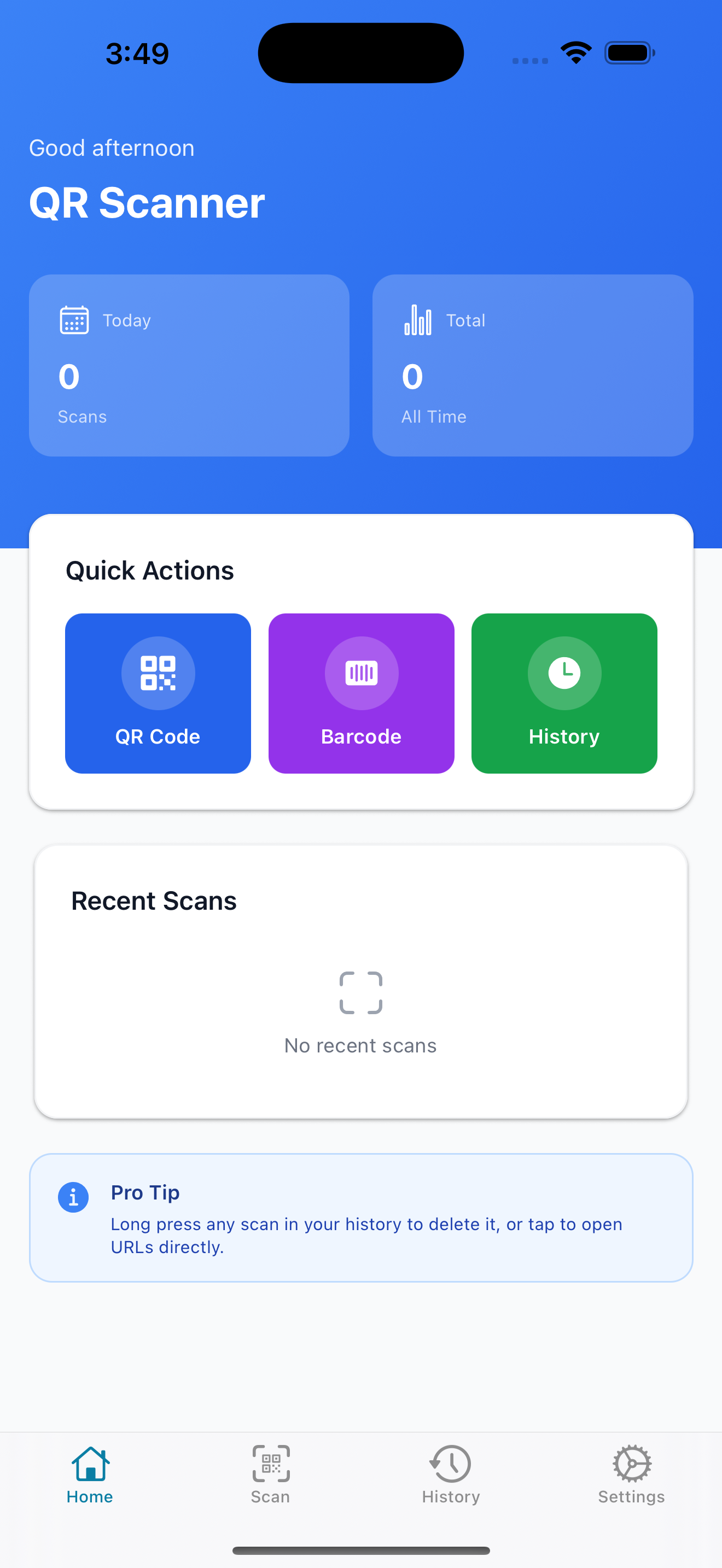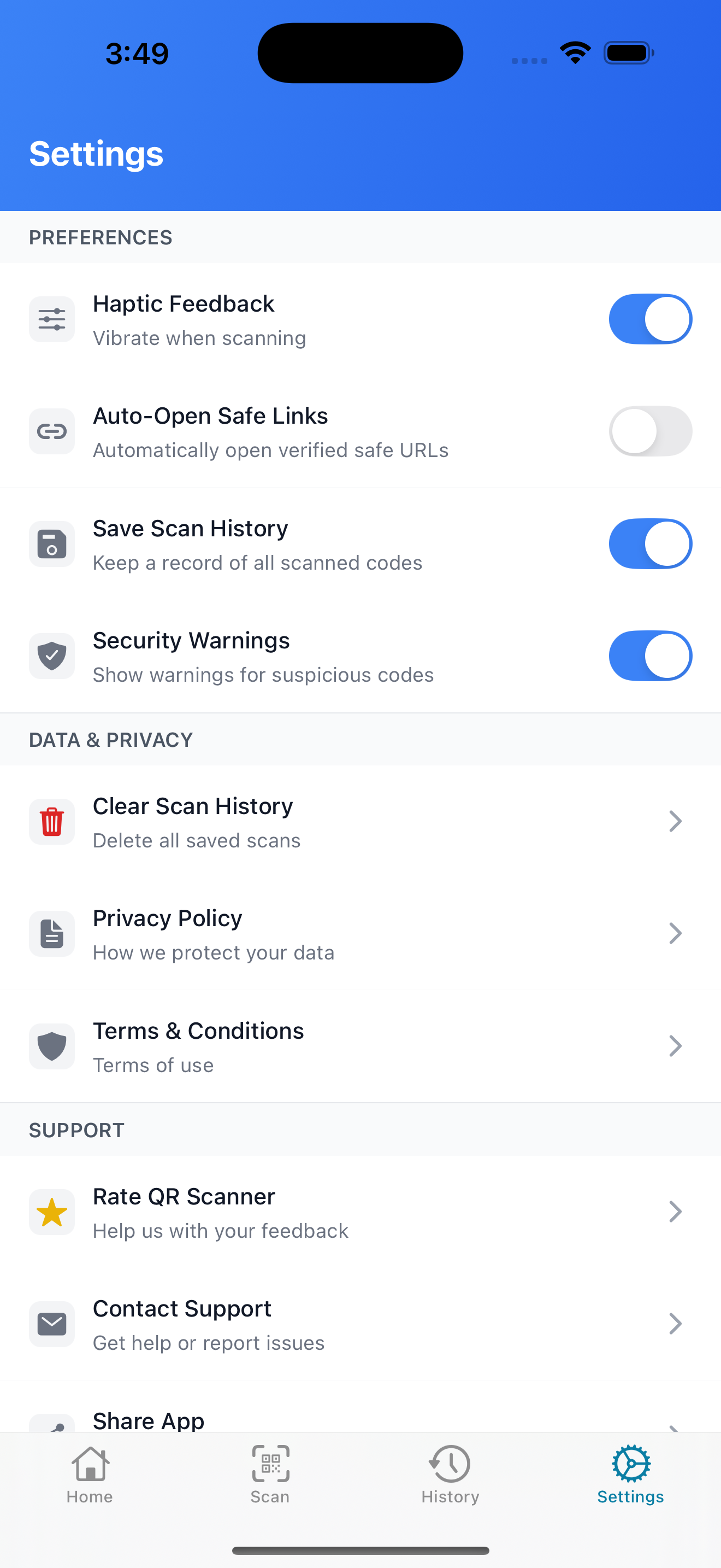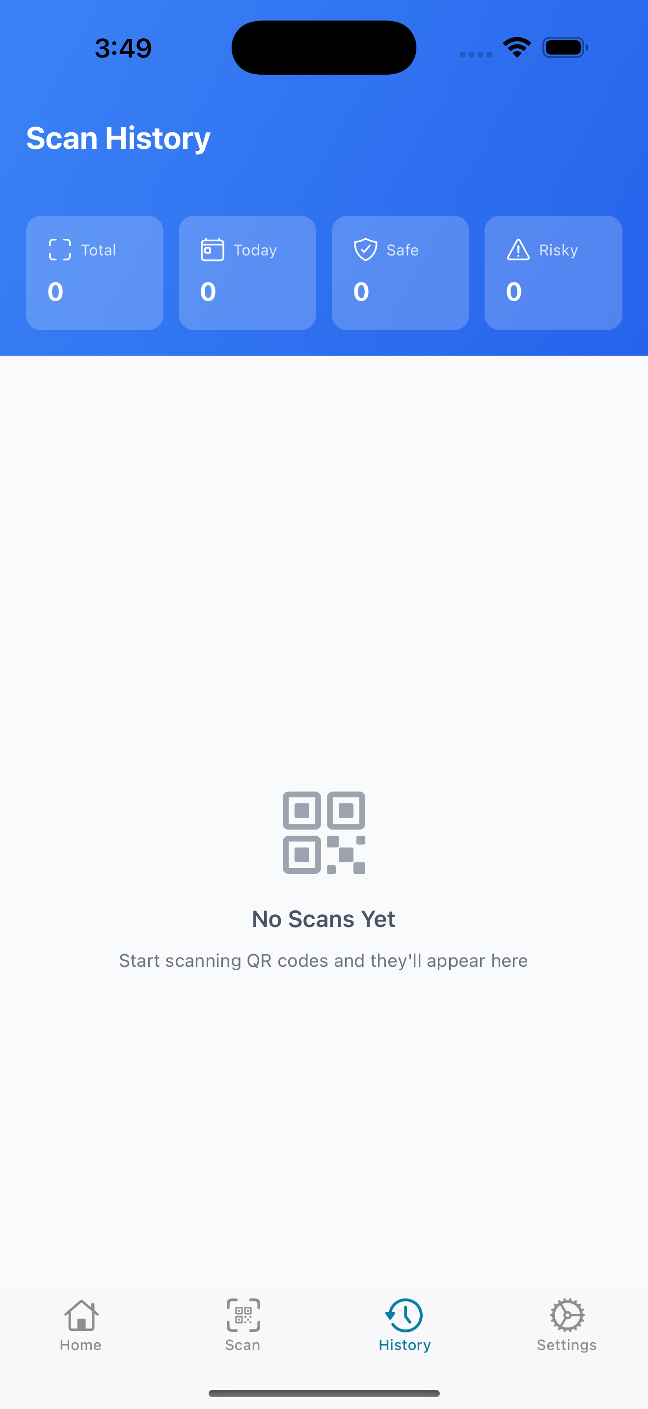 The smart QR code scanner that checks for suspicious URLs before you click. Keep your scan history secure and local on your device.